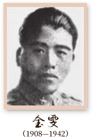 金雯,字叔章,1908年2月25日出生于瓯海区郭溪街道曹隶村,自幼聪慧刻苦,勤劳简朴,深受乡邻称赞。1925年从浙江省立中学毕业后,眼见国家内忧外患,17岁的他毅然投笔从戎。1927年,金雯从中央陆军军官学校第五期步兵科毕业,随北伐军征战,任陆军第14师少尉排长。在徐州战役中,他左腿被炮弹击中,却依然咬牙指挥,直至战役结束。