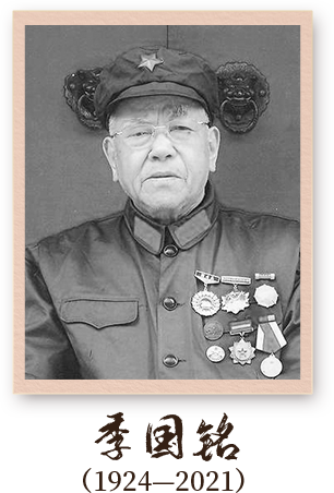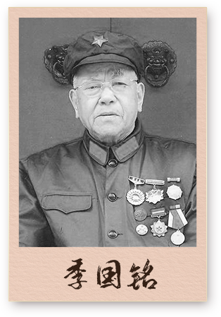 17岁时,季国铭第一次加入南通县警卫团,因个子太小,半年后被劝退。1942年1月,他转而投奔大同镇的亲人,加入当地抗日自卫队,站岗巡逻,迂回作战。同年5月,日军攻占三余地区,季国铭又加入三余地区游击中队,继续以游击战方式抗击日寇。